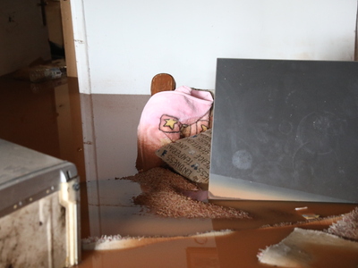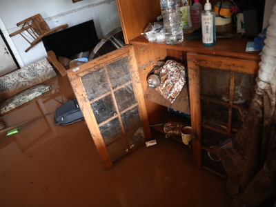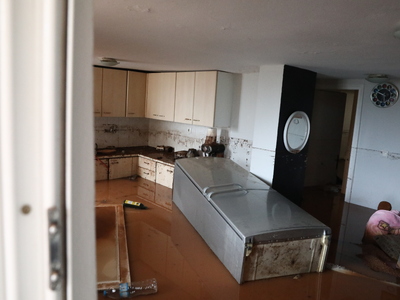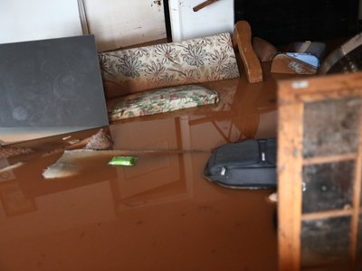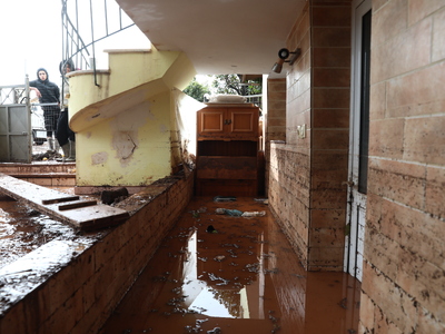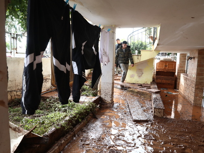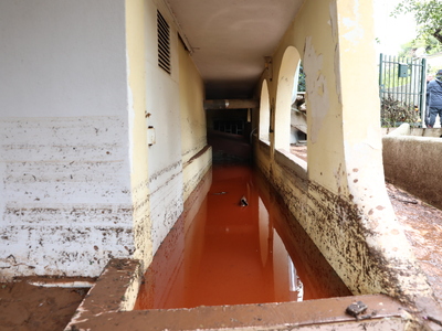 Υπερχείλισε το ποτάμι με αποτέλεσμα τα φερτά υλικά να μπουν σε μία επιχείρηση και σε ένα σπίτι. Ο δρόμος στην οδό Αρίωνος παραμένει ακόμα κλειστός.