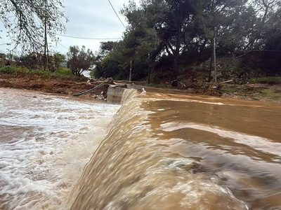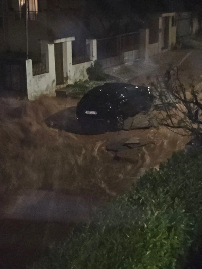 Στο Πικέρμι στην οδό Ήμερου Πεύκου έσπασε το ρέμα από τα ορμητικά νερά, υπερχείλισε ο δρόμος που παραμένει κλειστός.