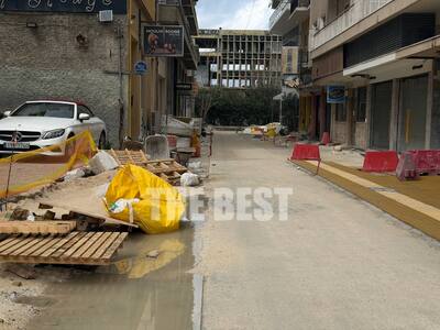 Η οδός ανακατασκευάζεται και τμήματά της πεζοδρομούνται, ωστόσο σχεδόν 12 μήνες μετά δεν έχουν ολοκληρωθεί. Το εργοτάξιο όμως που έχει δημιουργηθεί ακριβώς για τις εργασίες αυτές, παραμένει προσβάσιμο στους πολίτες που κινούνται στην ευρύτερη περιοχή.