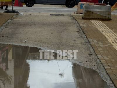 Στο κάτω τμήμα της Κανάρη δεν είδαμε εργασίες σε εξέλιξη το πρωί της Πέμπτης και κάποιοι το απέδωσαν στην ψηλή βροχή που έπεφτε ανά διαστήματα, κάτι που δεν βοηθά στην στήριξη των υλικών στο υπέδαφος.