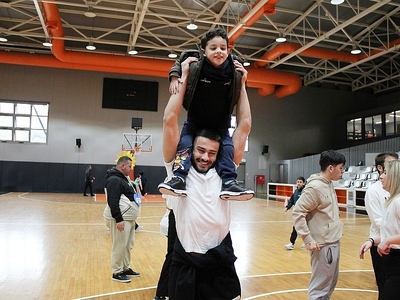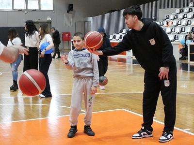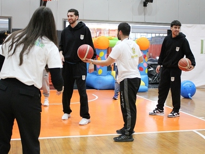 Μαζί με τα παιδιά και τους ανθρώπους του σωματείου, οι παίκτες έπαιξαν σουτάκια, αντάλλαξαν πάσες και γέμισαν τον χώρο με χαμόγελα και συγκίνηση, αποδεικνύοντας πως ο αθλητισμός μπορεί να αγγίξει καρδιές.