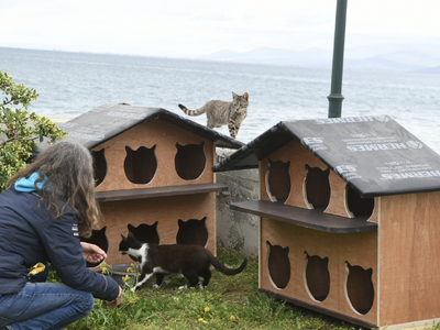 Νέα ξύλινα, καλαίσθητα σπιτάκια τοποθετήθηκαν στην περιοχή του Φάρου, στην Ιχθυόσκαλα της Πάτρας, προκειμένου να προσφέρουν καταφύγιο στις αδέσποτες γάτες που ζουν στην περιοχή.