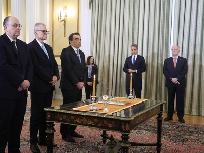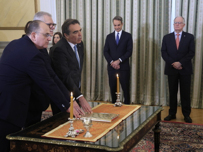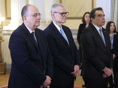 Μαργαρίτης Σχοινάς, Ευάγγελος Τουρνάς και Μακάριος Λαζαρίδης ορκίστηκαν στο Προεδρικό Μέγαρο, καθώς αναλαμβάνουν νέα καθήκοντα στο υπουργικό σχήμα μετά τον ανασχηματισμό της κυβέρνησης.