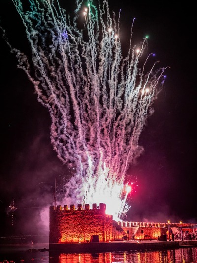Δάδες στις πολεμίστρες του γραφικού Ενετικού λιμανιού, ένας φλεγόμενος σταυρός στην είσοδό του, πλωτά φαναράκια, η συνάντηση δύο επιταφίων, ψαλμωδίες και εν συνεχεία πυροτεχνήματα συνθέτουν το σκηνικό.