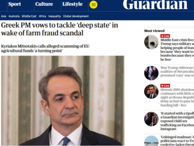 «Ο Έλληνας πρωθυπουργός έχει δεσμευτεί να αντιμετωπίσει αυτό που ο ίδιος αποκάλεσε «βαθύ κράτος» που, όπως λέει, μαστίζει τη χώρα, καθώς επιδιώκει να αντιμετωπίσει μια αυξανόμενη πολιτική κρίση σχετικά με ένα σκάνδαλο απάτης στον αγροτικό τομέα που έχει αναγκάσει πολλούς υπουργούς της κυβέρνησης σε παραίτηση» αναφέρει ο Guardian, σε άρθρο του που φιλοξενείται στο πρωτοσέλιδό του, ως δεύτερο θέμα, μετά τον πόλεμο των ΗΠΑ και Ισραήλ στο Ιράν.