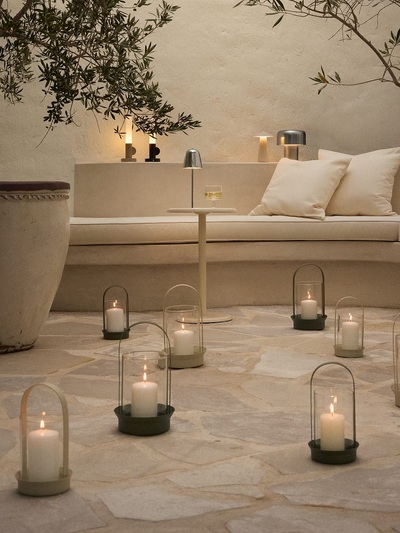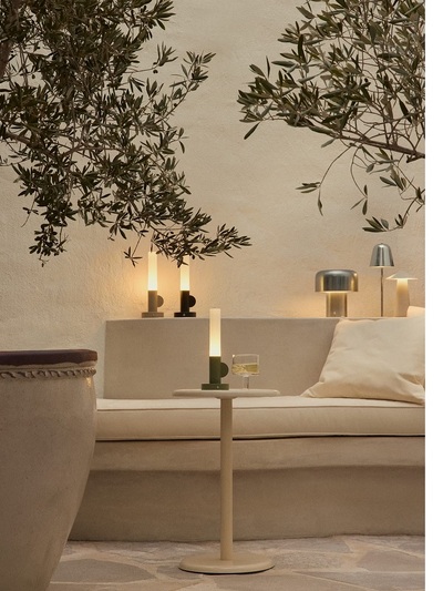Επαναφορτιζόμενα ή ηλιακά επιτραπέζια φωτιστικά. Γλάστρες με μοντέρνες βάσεις σε ιδιαίτερες φόρμες ,Τραπεζάκια από ξύλο μάνγκο ή μάρμαρο σε ιδιαίτερες καμπυλωτές σιλουέτες. Καλύμματα για μαξιλαράκια, πάγκους και ξαπλώστρες, μίνιμαλ κηροπήγια και καλάθια «φτιάχνουν ατμόσφαιρα».
