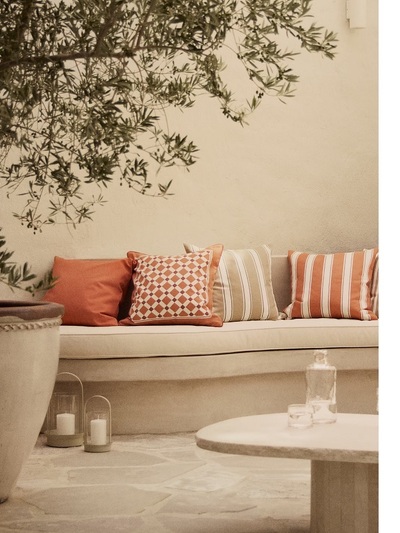 Με λιτή αισθητική και γαλήνια παλέτα – μπεζ, χακί, τερακότα, εκρού, πράσινο—φαντάζει πολύ ακριβή (ενώ δεν είναι) και ταιριάζει σε πολλούς εξωτερικούς χώρους.