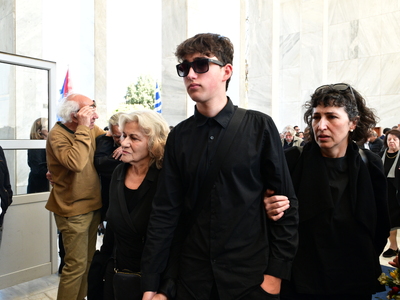 Η πρώην υπουργός του ΣΥΡΙΖΑ αποχαιρετά τον μοναχογιό της, ενώ βαθιά συγκινημένοι ήταν ο γιος του, Δημήτρης, καθώς και η σύντροφός του, Μαρία. Η απώλειά του ήρθε ξαφνικά, προκαλώντας σοκ.