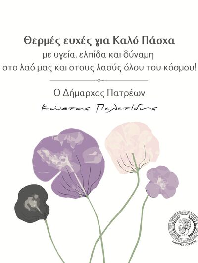 Τις ευχές του για τις Άγιες ημέρες του Πάσχα έστειλε ο Δήμαρχος Πατρέων Κώστας Πελετίδης.