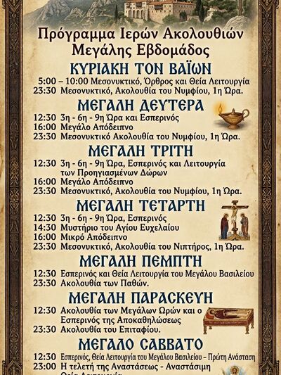 Στον Άγιο Αλέξιο η Ακολουθία του Επιταφίου ξεκινά στις 5.30 το απόγευμα