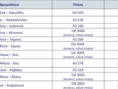 Αναλυτικά, η πρώτη πτήση θα ξεκινήσει στις 19:30 με προορισμό την Ζάκυνθο ενώ το τελευταίο δρομολόγιο έχει προγραμματιστεί για την Κεφαλονιά (από τον Βόλο) για τις 21:00.