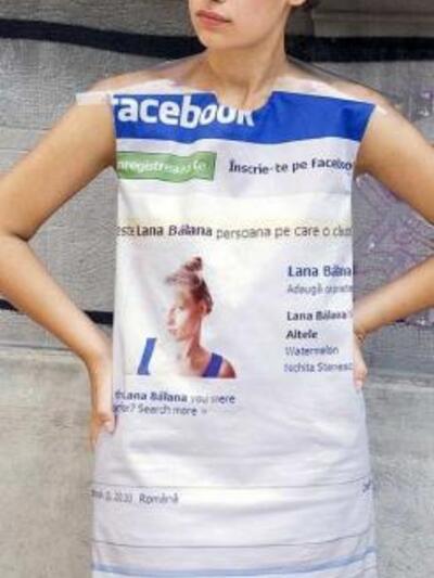 Όσες δεν μπορούν να ξεκολλήσουν από το Facebook τώρα μπορούν να το έχουν πάντα μαζί τους. Πώς απλά φορώντας το. Ναι καλά διαβάσατε το Facebook, το οποίο πέρα από μόδα έγινε και φόρεμα. Μια σχεδιάστρια από την Ρουμανία η Lana Dumitru, επηρεασμένη από τη σελίδα κοινωνικής δικτύωσης έφτιαξε ένα φόρεμα το οποίο είναι σαν προφίλ.