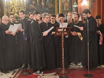 Ξεχωριστή και υποβλητική ήταν η ατμόσφαιρα στον Ιερό Μητροπολιτικό Ναό Ευαγγελιστρίας Πατρών όπου την Μεγάλη Τρίτη 7-4-2026 στη Β΄ Ακολουθία μετά τις 9 το βράδυ, έψαλλε, το περίφημο Τροπάριο της Οσίας Κασσιανής για την εν πολλαίς αμαρτίαις περιπεσούσα γυνή, η τετράφωνη χορωδία «Γεώργιος Ν. Τριάντης» του Ιερού Ναού Παντανάσσης Πατρών με χοράρχη τον κ. Θεόδωρο Χαλκιόπουλο.