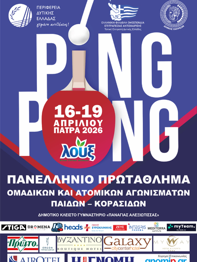Έρχεται γρήγορα μετά το Πάσχα η νέα μεγάλη διοργάνωση Πινγκ - πονγκ και η Πάτρα θα έχει τον ρόλο της οικοδέσποινας.