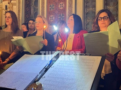 Μια από τις πιο ιδιαίτερες μουσικές στιγμές της Μεγάλης Εβδομάδας στην Πάτρα έζησαν για άλλη μια χρονιά οι πιστοί που βρέθηκαν το βράδυ της Μεγάλης Πέμπτης στον Ιερό Ναό του Αγίου Διονυσίου Πατρών, καθώς η Μικτή Χορωδία της Πολυφωνικής έψαλε το γνωστό τροπάριο «Σήμερον κρεμάται επί ξύλου…», συνεχίζοντας μια παράδοση που ξεκίνησε το 1984.