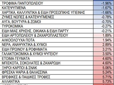 - Βρεφικές και παιδικές τροφές: +5,71%