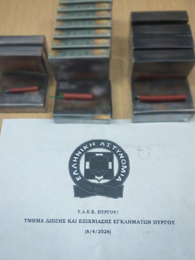 3. οι αστυνομικοί της Υποδιεύθυνσης Δίωξης και Εξιχνίασης Εγκλημάτων Πύργου, πραγματοποίησαν στις 8-4-2026, στην Ηλεία, έρευνα σε κατάστημα ιδιοκτησίας της κατηγορούμενης, κατά την οποία βρήκαν και κατέσχεσαν -17- κουτιά, που περιείχαν συνολικά -400- κροτίδες.