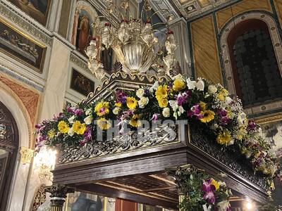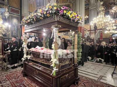 Η τελετή εξελίχθηκε σε κλίμα βαθιάς κατάνυξης, με τους ήχους των ψαλμών να πλημμυρίζουν τον χώρο και το άρωμα των λουλουδιών να συνοδεύει κάθε στιγμή της.
