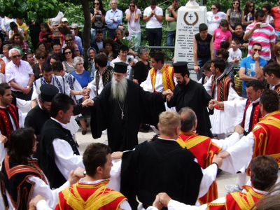 Αμέσως μετά ο ιερέας σέρνει πρώτος το χορό παρέα με τους φουστανελάδες και ακολουθεί γλέντι με ψητά αρνιά, κόκκινα αυγά, κουλούρια και κρασί».