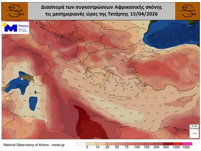 Οι μετεωρολογικές συνθήκες ευνοούν αυξημένη συγκέντρωση αφρικανικής σκόνης κυρίως στην ανατολική χώρα.