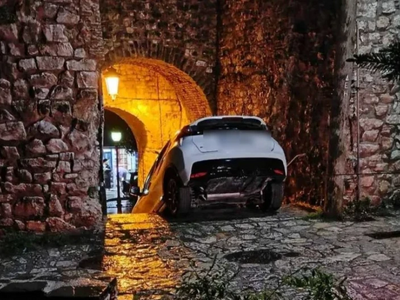 Ένα αυτοκίνητο «κόλλησε» στα σκαλοπάτια πύλης του Κάστρου Ιωαννίνων το απόγευμα της Τρίτης του Πάσχα, όταν οδηγός επιχείρησε να εισέλθει στον χώρο από στενό πέρασμα που δεν προορίζεται για οχήματα.