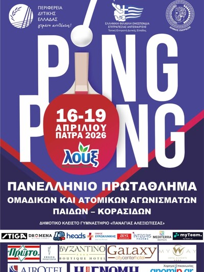 Στους καλύτερους αθλητές και τις καλύτερες αθλήτριες επιτραπέζιας αντισφαίρισης έως 15 ετών δίνεται ο αγωνιστικός λόγος αυτή την εβδομάδα. Στην Πάτρα στήνεται το νέο πεδίο με το Πανελλήνιο πρωτάθλημα παίδων-κορασίδων 2025-2026.