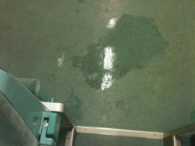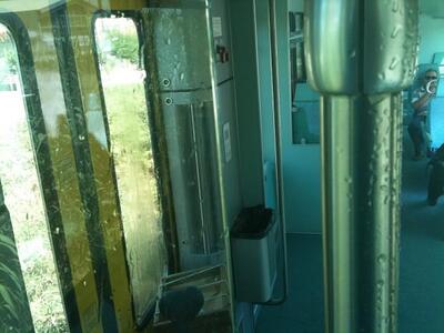 Τα νερά των μηχανημάτων κλιματισμού στην οροφή του συρμού, αντί να παροχετεύονται εκτός καμπίνας, επέστρεφαν μέσω των αεραγωγών στο χώρο των επιβατών και με την βοήθεια της κίνησης, πλημμύρησαν τον χώρο και έβρεξαν τα γύρω καθίσματα (ΦΩΤΟ).
