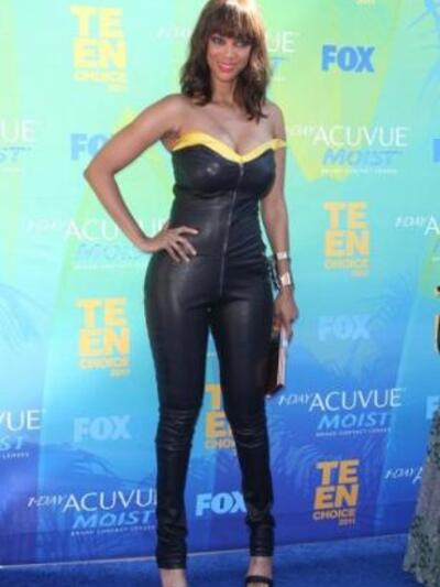 Η Tyra Banks, η δημιουργός και παρουσιάστρια της εκπομπής Next Top Model που κατά τα άλλα λατρεύουμε, υπέπεσε σε ένα μικρό στιλιστικό λάθος την προηγούμενη Κυριακή στην βραδιά απονομής των Teen Choice Awards. Η Tyra, λοιπόν, η οποία αστειευόμενη τουΐταρε πως μοιάζει με άγρια μελισσούλα εκείνη την ημέρα, δεν κατάφερε να εντυπωσιάσει μέσα σε αυτή την Thierry Mugler μαυροκίτρινη δερμάτινη φόρμα.