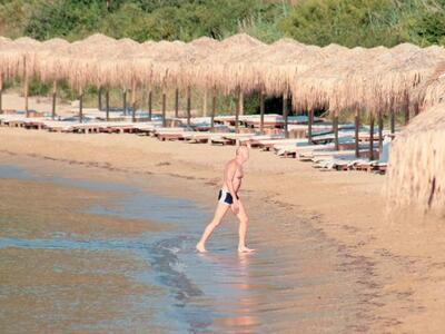 Την Τρίτη, νωρίς το πρωί και με την πλαζ ακόμη τελείως άδεια από λουόμενους, ο πρωθυπουργός κατέβηκε στην παραλία και κολύμπησε για αρκετή ώρα. Προτού μπει στη θάλασσα έκανε push ups, κοιλιακούς και ραχιαίους, αλλά και ασκήσεις με βαράκια τα οποία παίρνει μαζί του πάντα στις διακοπές.
