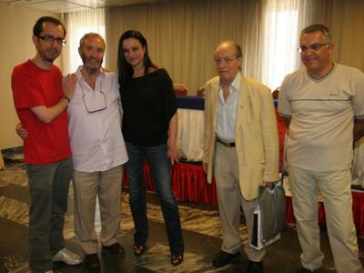 Ο Νίκος Κουρής μαζί με τη Νένα Μεντή και την Ελένη Κοκκίδου (γνώριμη στους Πατρινούς από την παράσταση «Η Γυναίκα της Πάτρας» που είχε παιχθεί τον περασμένο Οκτώβριο στο Δημοτικό θέατρο Απόλλων) μίλησαν στους δημοσιογράφους για την παράσταση «Σκηνοβάτες» σε σκηνοθεσία του Σταμάτη Φασουλή που θα ανέβει την Πέμπτη 25 Αυγούστου στις 21.15 στο Αρχαίο Ωδείο στο πλαίσιο του 30ου Επετειακού Φεστιβάλ Πάτρας-Θεσμός Αρχαίου Δράματος του Οργανισμού Καλλιτεχνικών και Πολιτιστικών Εκδηλώσεων.