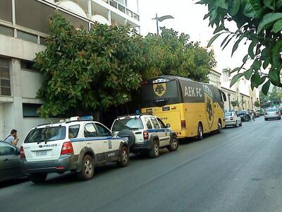 Κατέφθασε πριν από λίγο στην Πάτρα η ομάδα ποδοσφαίρου της ΑΕΚ η οποία δίνει απόψε αγώνα στην Αγυιά με την Παναχαϊκή. Οι παίχτες έφτασαν σε κεντρικό ξενοδοχείο της πόλης με το πούλμαν της ομάδας, συνοδεία ισχυρής αστυνομικής δύναμης.