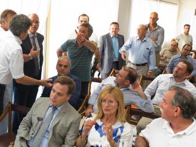 Στη συνέχεια, οι δικηγόροι της Θεσσαλονίκης αποκάλεσαν τον κ. Πεταλωτή «δήμιο» και «υφυπουργό της Τρόικας».Ακολούθησε άγριος καυγάς μεταξύ των δικηγόρων και η ομιλία Πεταλωτή διακόπηκε.Τελικά οι ταραξίες απομακρύνθηκαν και η ομιλία του συνεχίστηκε κανονικά.