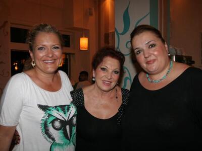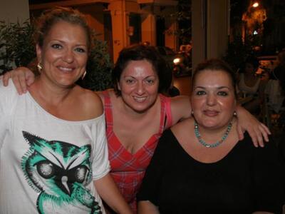 Τα δύο "Κορίτσια με τα μαύρα" Χρυσούλα Διαβάτη και Σοφία Μουτίδου, μετά την παράσταση στο Αρχαίο Ωδείο όπου χάρισαν το γέλιο στους θεατές, χαλάρωσαν τρώγοντας "απέναντι απ'το Ωδείο" και φωτογραφήθηκαν με την Σοφία και Ντίνα Χαντζή. Ο φακός του Παναγιώτη Μουλίνου ήταν εκεί.