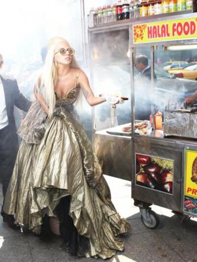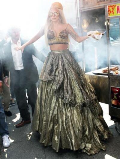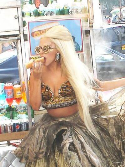Το Central Park αναστάτωσε η Lady Gaga για τις ανάγκες της φωτογράφησης για το Vanity Fair με φωτογράφο την Annie Leibovitz. Η τραγουδίστρια φορούσε ένα εκκεντρικό κοστούμι ενώ προσπαθούσε να ισορροπήσει σε μια τεράστια πλατφόρμα τρώγοντας χοτ-ντογκ.