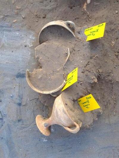Οι εν λόγω τάφοι είχαν δεχτεί περισσότερους του ενός νεκρούς. Μεταξύ των κτερισμάτων ξεχωρίζουν πήλινα συμποτικά αγγεία, λίθινα σφοντύλια και χάλκινη περόνη. Τα ευρήματα τοποθετούνται χρονολογικά στον 14ο αι. π.Χ.