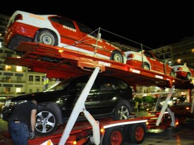 Έφτασαν χθες το βράδυ στην Πάτρα τα αυτοκίνητα επίδειξης που θα κόψουν την ανάσα του κοινού με τις ακροβατικές επιδείξεις τους.Οι τρεις BMW της ιταλικής ομάδας Stunt Show Motori θα εκτελέσουν ασκήσεις ακριβείας με ταχύτητα μέσα στην πίστα του 3ου PICK BP Ultimate.
