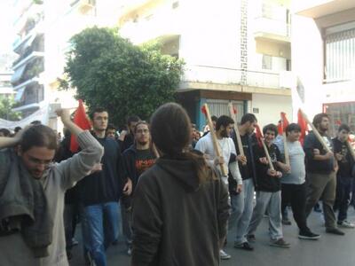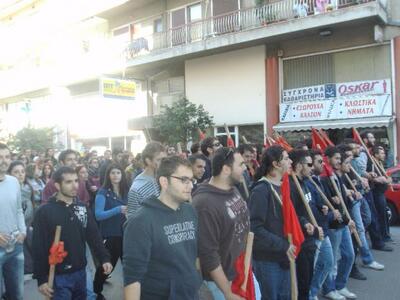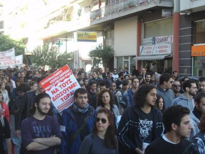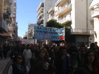 Η πορεία ανέβηκε την Κολοκοτρώνη και μέσω της οδού Κορίνθου κατέληξε στα γραφεία της Αιρετής Περιφέρειας στη Νέα Εθνική Οδό, όπου και παρέμεινε για αρκετή ώρα. Να σημειωθεί ότι την ώρα που η κεφαλή της πορείας ήταν στην Περιφέρεια, το τέλος της πορείας ήταν ακόμη στο ύψος της Ζαίμη!