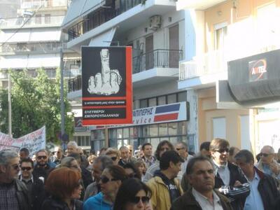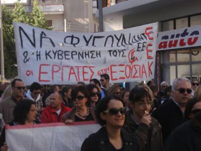 Η συμμετοχή του κόσμου ήταν, τόσο μαζική, όσο και ειρηνική και στην πορεία κυριάρχησαν τα συνθήματα κατά των νέων μέτρων και της πολιτικής που επιβάλει η Τρόικα στη χώρα.