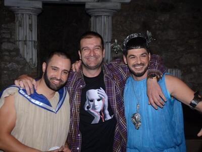 Υποδυόμενοι τους ρόλους της παρωδίας του Τρωικού πολέμου, επι σκηνής οι: Ελένη Καραλή – Σαρακίνη, Μάχη Αντωνοπούλου, Ασημάκης Στρατογιάννης, Καλλιρόη Τσώκου, Νικολέτα Μπακοπούλου, Ιάσονας Φωτήλας, Μαρία Καραπαναγιώτη, Ρούλα Μπάδα, Κωνσταντίνα Μαντζαβίνου, Αλεξάνδρα Σπηλιωτοπούλου, Έλενα Λουμπαρδέα, Δημήτρης Γεωργόπουλος, Τζίμης Πολίτης, Θάνος Τσέρης, Σταύρος Σολακάκης, Άλκης Σαρακίνης, Θεοδώρα Λιούταρη, Μάκης Νικολόπουλος και Ανέστης Χανουμίδης, χάρισαν άφθονο γέλιο σε όλη τη διάρκεια της παράστασης.
