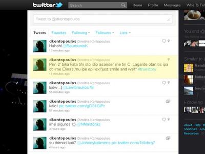 Στον προσωπικό του λογαριασμό στο twitter δημοσίευσε μία πρόσφατη εμπειρία του ο συνθέτης Δημήτρης Κοντόπουλος. Όπως αναφέρει συνάντησε τυχαία στο ανσασέρ την πρόεδρο του ΔΝΤ, Κριστίν Λαγκάρντ η οποία μόλις άκουσε ότι είναι Έλληνας του είπε "Χαμογέλα και περίμενε"!