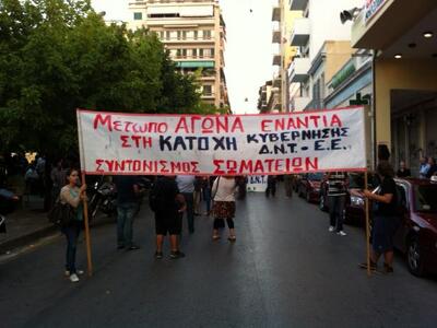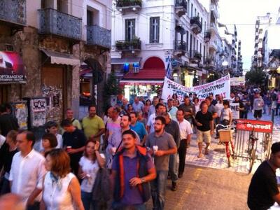 "Δεν πληρώνουμε άλλους τοκογλύφους" είναι το κεντρικό σύνθημα, ενώ ξεκινησε η πορεία που κατευθύνεται σε κεντρικούς δρόμους της Πάτρας με τη συμμετοχή των εργαζομένων σε ιδιωτικό και δημόσιο τομέα, μελών του ΣΥΡΙΖΑ και της ΑΝΤΑΡΣΥΑ, φοιτητών και εκπαιδευτικών
