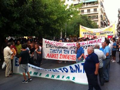 Συλλαλητήριο κατά της κυβερνητικής πολιτικής πραγματοποιείται αυτή την ώρα στην Πάτρα. Το Εργατοϋπαλληλικό Κέντρο Πάτρας και η ΑΔΕΔΥ έδωσαν ραντεβού για σήμερα το απόγευμα στην πλατεία Όλγας, προκειμένου να ξεκινήσουν να ηχούν τα τύμπανα του πολέμου για τη γερμανίδα καγκελάριο. Η κινητοποίηση, σύμφωνα με σχετική ανακοίνωση, γίνεται:"Ενάντια στην κυβερνητική πολιτική και τους Τροϊκανούς, για τα αλλεπάλληλα, άδικα, πρωτοφανή, εξαθλιωτικά μέτρα."