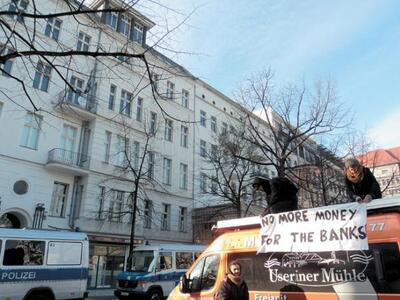 Ευτυχώς για τον πρωθυπουργό, αυτή τη φορά ο πολιτικός ακτιβισμός έμεινε στα όρια του... βιετναμέζικου και όχι στο εσωτερικό της ημερίδας - σε αντίθεση με την προηγούμενη φορά που ο λόγος του διεκόπη απότομα όταν ομάδα φοιτητών είχε παρέμβει με δυναμικό τρόπο στη συνάντηση του τότε πρωθυπουργού με την Ανγκελα Μέρκελ στον Σύνδεσμο Γερμανικής Βιομηχανίας. Ηταν ακριβώς πριν από έναν χρόνο όταν η δραστήρια ομάδα του Real Democracy Now/Berlin/Gr είχε καταφέρει να συγκεντρώσει πλήθος κόσμου και δημοσιογράφους έξω από το κτίριο, επιβεβαιώνοντας για μία ακόμη φορά την παρουσία της. Κρατώντας τεράστια πανό και αψηφώντας τη βροχή, δεν σταμάτησαν να φωνάζουν «Το ΠΑΣΟΚ είναι εδώ και ληστεύει τον λαό», ενώ άλλα δύο τεράστια έγραφαν «Schulden, Sparen, Sterben» («Να χρωστάς, να αποταμιεύεις, να πεθαίνεις»). Επίσης είχαν πλακάτ: ένα με την ελληνική σημαία με το «Siemens» στη θέση του σταυρού, ένα «Πωλείται η Ελλάδα: λιμάνια, αεροδρόμια, νερό, ρεύμα» και ένα με επιλεγμένα οικονομικά μέτρα της κυβέρνησης. Η ομάδα δεν σταμάτησε ποτέ, κάθε φορά που Ελληνας πρωθυπουργός επισκεπτόταν το Βερολίνο, να υψώνει πανό και στεντόρεια φωνή διαμαρτυρίας, με πιο γνωστά συμβάντα εκείνα των ομιλιών Σημίτη και Πάγκαλου. Πρόσφατη ήταν η παρέμβασή τους και στην κοινή εμφάνιση που έκαναν στο Βερολίνο ο Γιάννης Πρετεντέρης και η Ντόρα Μπακογιάννη.