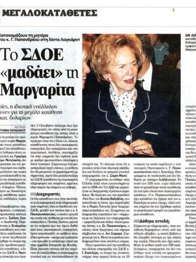 Μεγάλη δυσφορία προκάλεσαν τόσο στη Μαργαρίτα Παπανδρέου όσο και στον πρώην πρωθυπουργό Γιώργο Παπανδρέου δημοσιεύματα στον κυριακάτικο Τύπο, τα οποία φέρουν τη μητέρα του να εμπλέκεται στην υπόθεση της «Λίστας Λαγκάρντ».
