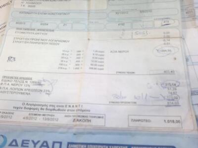 Συμπολίτισσα η οποία κατήγγειλε το γεγονός στο contraseolous.blogspot.com υποστήριξε ότι δεν έχει εμφανιστεί στο σπίτι της υπάλληλος της ΔΕΥΑΠ εδώ και ένα χρόνο επειδή από την υπηρεσία της είπαν ότι δεν είχαν κάποιον να στείλουν. Η ίδια καλείται τώρα να πληρώσει 1000 ευρώ για λογαριασμούς νερού και μάλιστα εμφανίστηκε στο σπίτι της συνεργείο για να προχωρήσει σε διακοπή της παροχής.