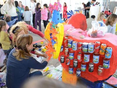 Όπως και το Σάββατο 13 Απριλίου, έτσι και το προηγούμενο, 23 του μήνα, πραγματοποιήθηκε στο Καρναβαλικό Εργαστήρι και Καλλιτεχνικών Κατασκευών, εργαστήριο σε εικαστική κατασκευή, με τη συμμετοχή 400 μαθητών από σχολεία του Δήμου Πατρέων.