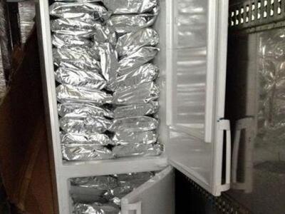 Σε... ψυγείο που επρόκειτο να ταξιδέψει στην Ιταλία είχαν κρύψει οι έμποροι 68 κιλά κάνναβης. Η Δίωξη του ΣΔΟΕ, σε συνεργασία με την αντίστοιχη υπηρεσία του Λιμενικού, εντόπισε στο Λαύριο ακόμη ένα ψυγείο, με 56 κιλά και 155 γρ. κάνναβης που επρόκειτο να μεταφερθεί στην Κύπρο (φωτογραφία αριστερά). Οπως προέκυψε, οι δράστες ήταν μέλη διεθνούς κυκλώματος που διακινούσε μεγάλες ποσότητες ναρκωτικών στην Ευρώπη.