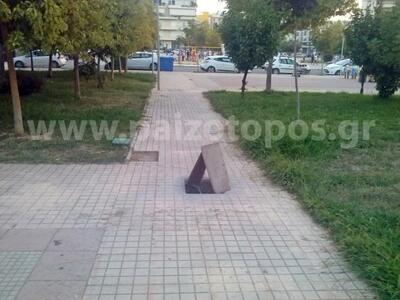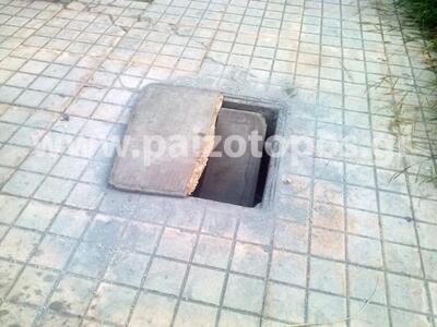 Τα σιδερένια καπάκια των φρεατίων έχουν αντικατασταθεί με ξύλινα ,υλικό λιγότερο αξιόπιστο όταν πάνω από αυτό περνάει καθημερινά τόσος κόσμος .