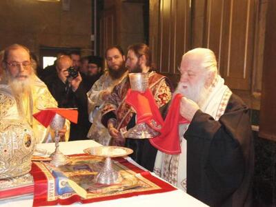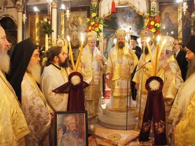 Στην Ιερά Μονή Γηροκομείου Πατρών, μέσα σε ιδιαίτερα κατανυκτική και ευλαβική ατμόσφαιρα, τελέστηκε Πολυαρχιερατικό Συλλείτουργο προεξάρχοντος του κ.κ. Χρυσοστόμου. Ως συλλειτουργοί του παρέστησαν οι Σεβασμιότατοι Μητροπολίτες Ναυπάκτου και Αγίου Βλασίου κ.κ. Ιερόθεος, Σερρών και Νιγρίτης κ.κ. Θεολόγος, Κερκύρας, Παξών και Διαποντίων Νήσων κ. Νεκτάριος, Ζιχνών και Νευροκοπίου κ. Ιερόθεος, Ιερισσού, Αρδαμερίου και Αγίου Όρους κ. Θεόκλητος και Αιγιαλείας και Καλαβρύτων κ.κ. Αμβρόσιος. Επίσης παρών ήταν και ο Μητροπολίτης Μαντινείας και Κυνουρίας από το νομό Αρκαδίας κ.κ. Αλέξανδρος.