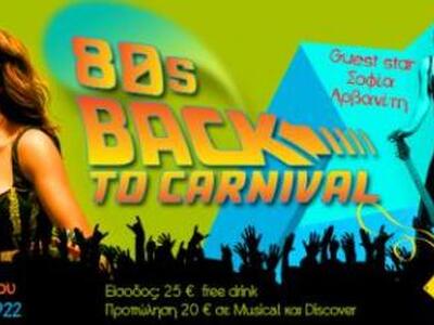 Φέτος Guest Star του πάρτι 80’s Back To Carnival θα είναι η ποπ τραγουδίστρια Σοφία Αρβανίτη, ιδιαίτερα δημοφιλής στα τέλη της δεκαετίας του ’80 και τη δεκαετία του ’90, η οποία αναμένεται να ερμηνεύσει όλες τις επιτυχίες της που αγαπήσαμε και χορέψαμε όπως το "Μη μου μιλάς για καλοκαίρια", "Σοκολατί", "Πεθαίνω στην ερημιά", "Ζωή σαν πορτοκάλι", κ.α.